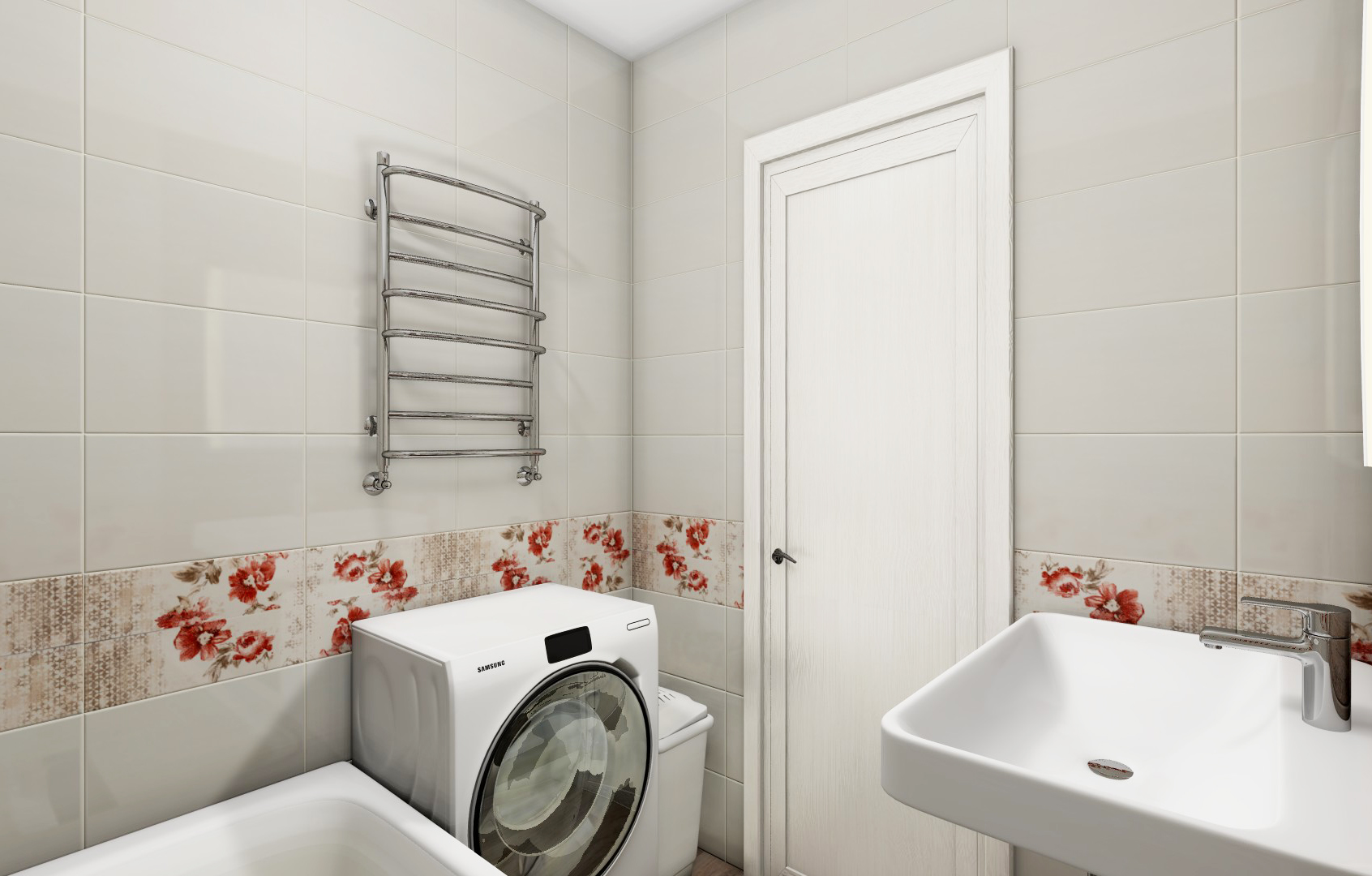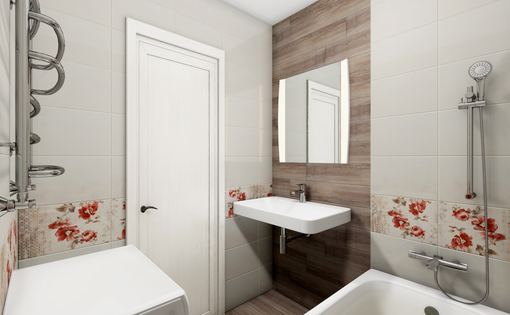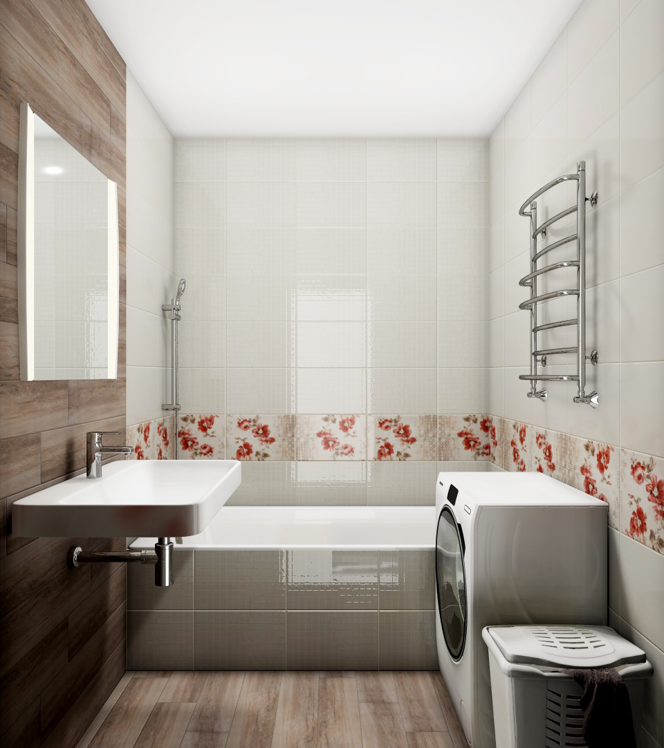Проект ванной комнаты в бежевой гамме №21002